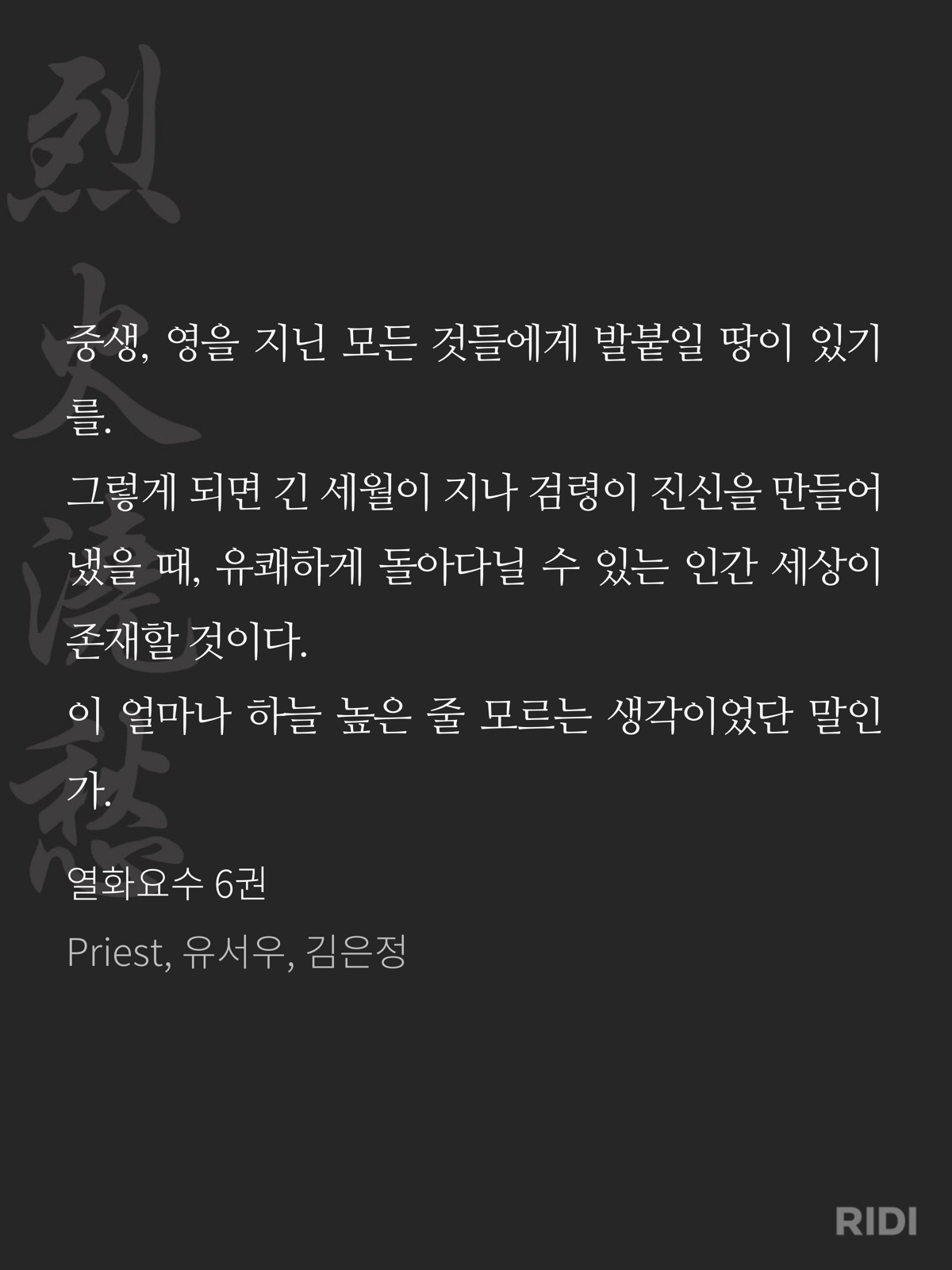 열화의 메인이 되는 캐치프레이즈 > 중생, 영을 지닌 모든 것들에게 발붙일 땅이 있기를.