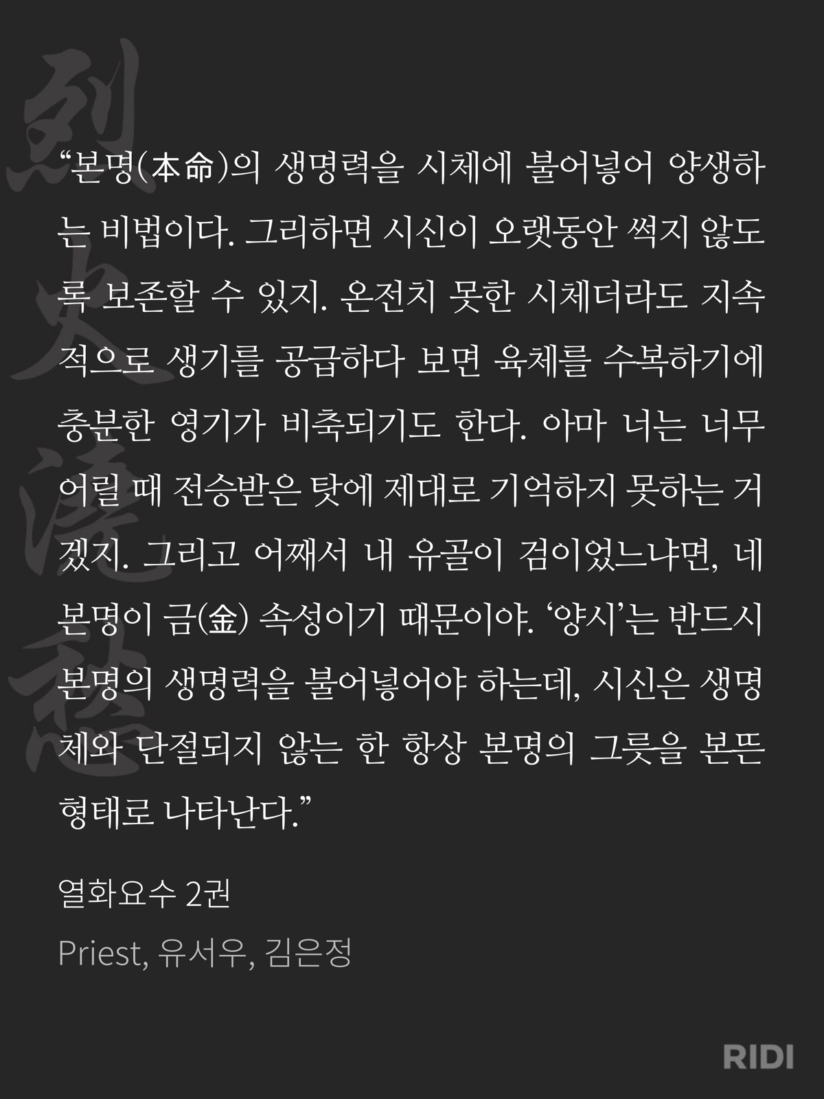 그렇게 쉬엔지는 열화와 백골 사이에서 다시 태어나게 되었다고 해요(육신을 get)